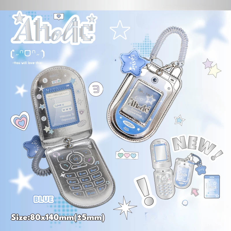 Replongez dans l'ambiance des années 2000 avec ce porte-photocard rétro en forme de téléphone . Conçu pour ressembler à un téléphone à clapet argenté, il arbore des détails imprimés ludiques, une brillance métallique et une fenêtre transparente sécurisée pour mettre en valeur votre photocard préférée de 7,6 cm. À la fois élégant et protecteur, il peut également servir de porte-clés ou d'accessoire de sac pour les étudiants, les fans de K-Pop et les collectionneurs.