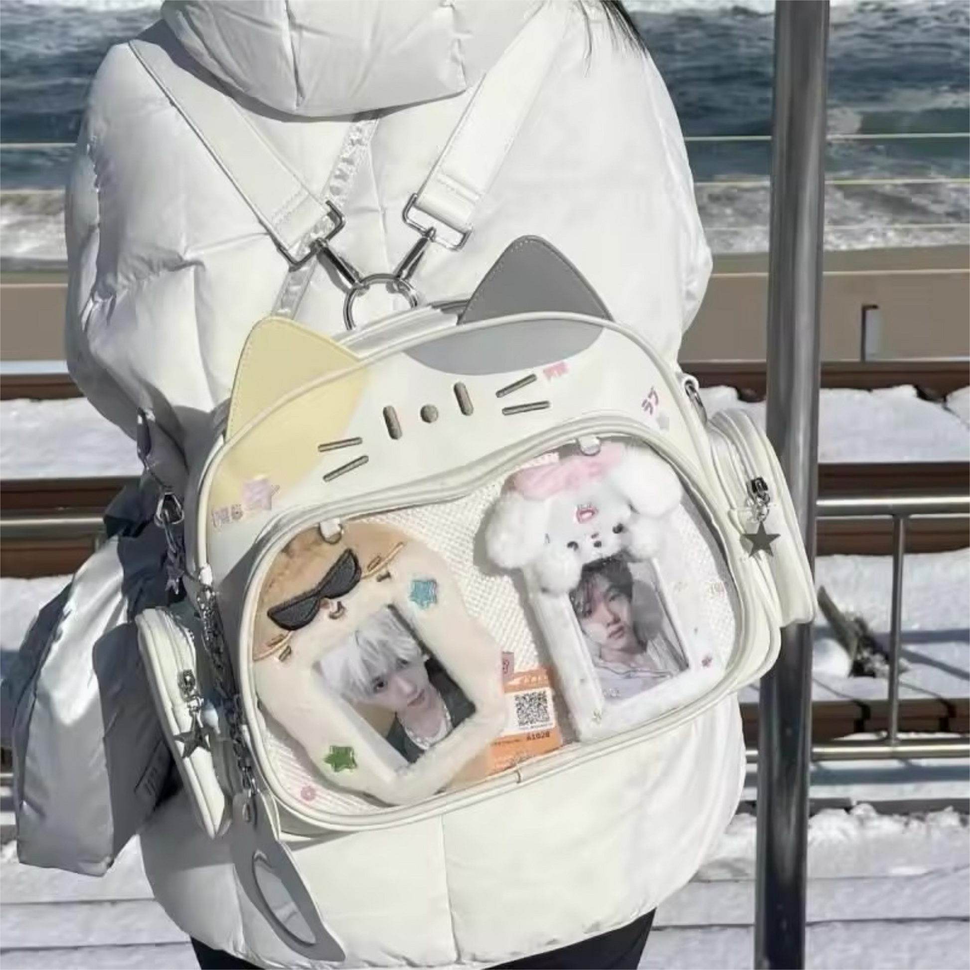 Make a statement with the adorable Cat Ita Bag. This Japanese-inspired ita backpack is crafted from durable PU leather and features a transparent display window, perfect for showcasing your favorite pins, keychains, and collectible charms. Whether you’re heading to an anime convention, school, or simply adding flair to your daily look, this versatile ita bag is a must-have for Harajuku fashion enthusiasts.